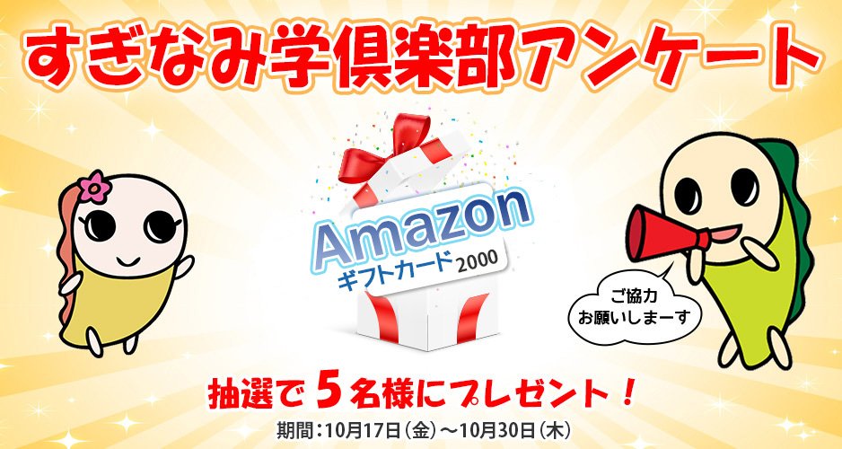 本日より10月30日(木)まですぎなみ学倶楽部アンケートを実施中!ぜひご協力ください