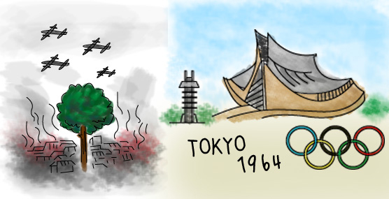 「そう、100年位前に大きな地震があって、ここら辺にも急にお前さんたちの住む家が建ちはじめたが、それでもわし等とは仲良くやってきた。そして70年位前には大きな鉄の鳥の大群が来て、お前さんたちの家々を焼こうとしたときも火を防いだりして、お前さんたちとうまくやってきたつもりだ。それがどうだ、56年前位にオリンピックとかいう大運動会があったころから様子がおかしくなった…、」