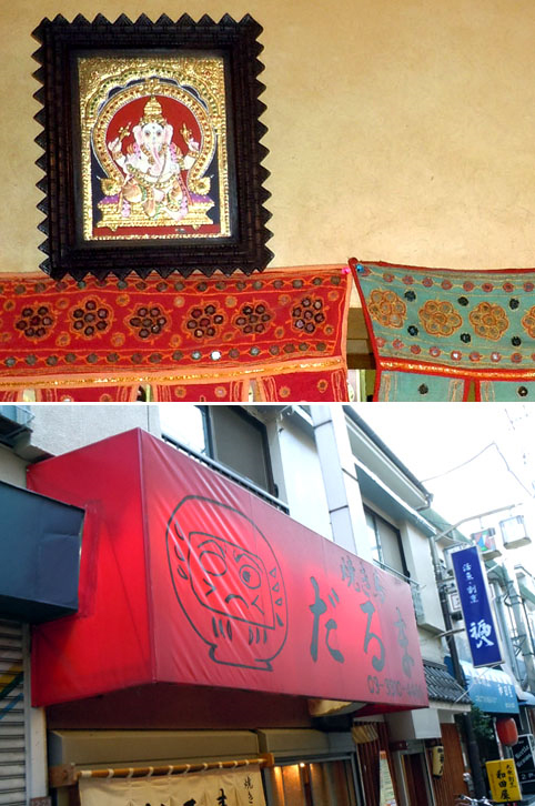 南アジアのレストランもいろいろありました。どこもヒンズーの神様のイメージです。阿佐谷北の道で驚いた物はたくさんありましたが、一番はインドの「だるま」の伝説でした。「だるま」という焼き鳥屋さんがあって、親切な店長さんが意味を説明して下さいました。目標が叶う象徴とか幸運の意味を持っているそうです。阿佐谷北の道はとても面白くて、多様な文化が観られて良かったです。