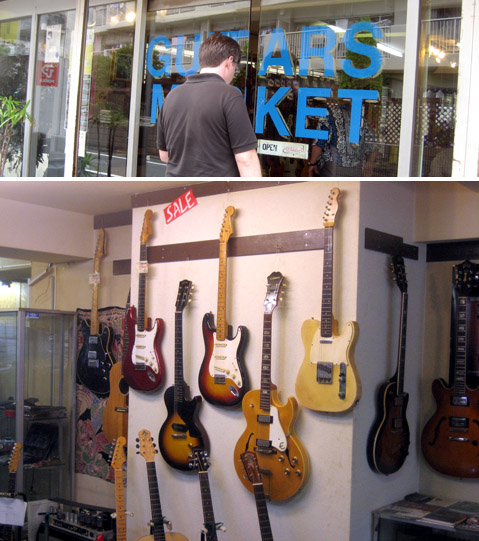 GREG: When Damian suggested we check out a guitar shop, of course I was all for it! Since we are both serious players, it seemed like a perfect stop on our walk. The place was really cool with lots of great vintage guitars and amps. The owner started it in 1984 and chose the location because there is a great venue nearby as well as other music and related stores. Guitars Market specializes in vintage guitars and amps, and also does repairs. The kind owner, Mr. Terada, is also a musician and knows how to help out a lot of musicians.