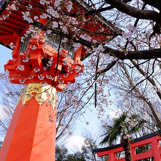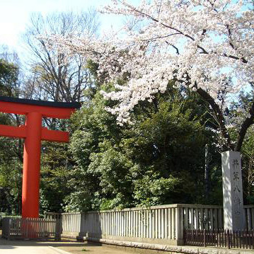 武蔵野の緑を色濃く残す善福寺池のそばに建ち、古地名を冠して「遅の井八幡宮」とも呼ばれた「井草八幡宮」。西荻窪駅や西武新宿線上井草駅から徒歩20分程度。荻窪駅や西荻窪駅からバスに乗っても行ける。ここでのお花見スポットは、「八幡宮裏」バス停の前の北参道の南側。大きな灯篭が目印。参道入り口で迎えてくれるのは、左右一対に聳え立つ朱塗りの大灯籠。高さは約9メートル、屋根は銅板葺きで八畳分の広さがあるというから驚き。北参道の入り口の大きな桜の木、見ごたえ十分。また参道内も桜並木が並ぶ。