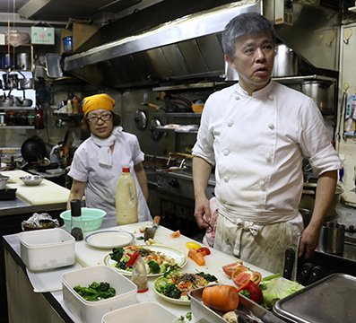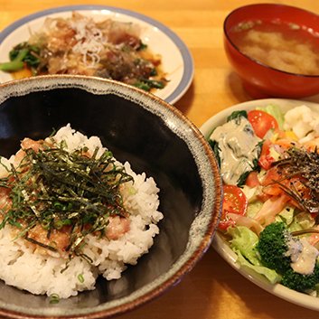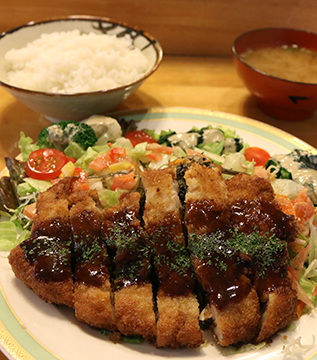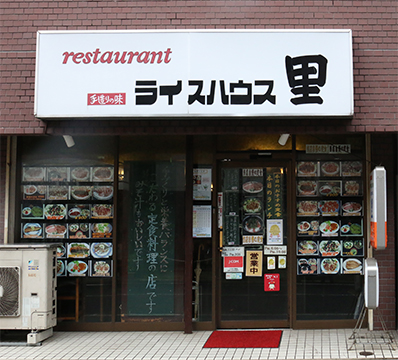 店頭には30数種類ある定食メニューの写真がずらり。野菜の量が多い店として近隣に知られている。多くの定食に、種類豊富な生野菜と温野菜がバランス良く盛られたサラダが付き、手作りのドレッシングでいただく。ヘルシーメニューの「ネギトロ丼定食」は、このサラダと味噌汁、小鉢付き。千葉産のブランド肉を使用したポークソテーも自慢料理だ。ちなみに店名の「里」は店主の奥様のお名前から一文字。愛妻家ぶりがうかがえる。・ランチ:700円~ ディナー:750円~
