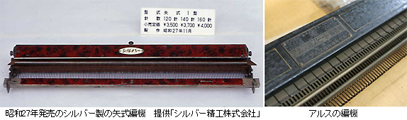 日本が戦後の混乱期からまだ抜け出せないでいた昭和20年代半ばに、編物が早くできる機械として売り出されました。一時は女性たちの間で大ブームとなり、次々と新製品が発売されますが、セーターやカーディガンなどの安価な既製品が出回るようになってからは、愛好者もぐんと減ってしまったようです。そんな編機にまつわるお話を、編機の愛好家であり指導者である山岸澄子さんと、編機メーカー「シルバー精工株式会社」家庭機器営業部課長の蛯原かつ子さんに語っていただきました。