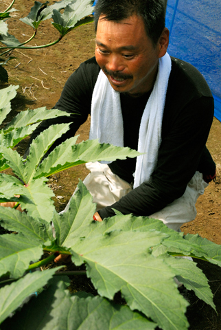 宗孝さんは、この地で農業を営む11代目。栽培した野菜の7割は、畑の入口で直販をしている。