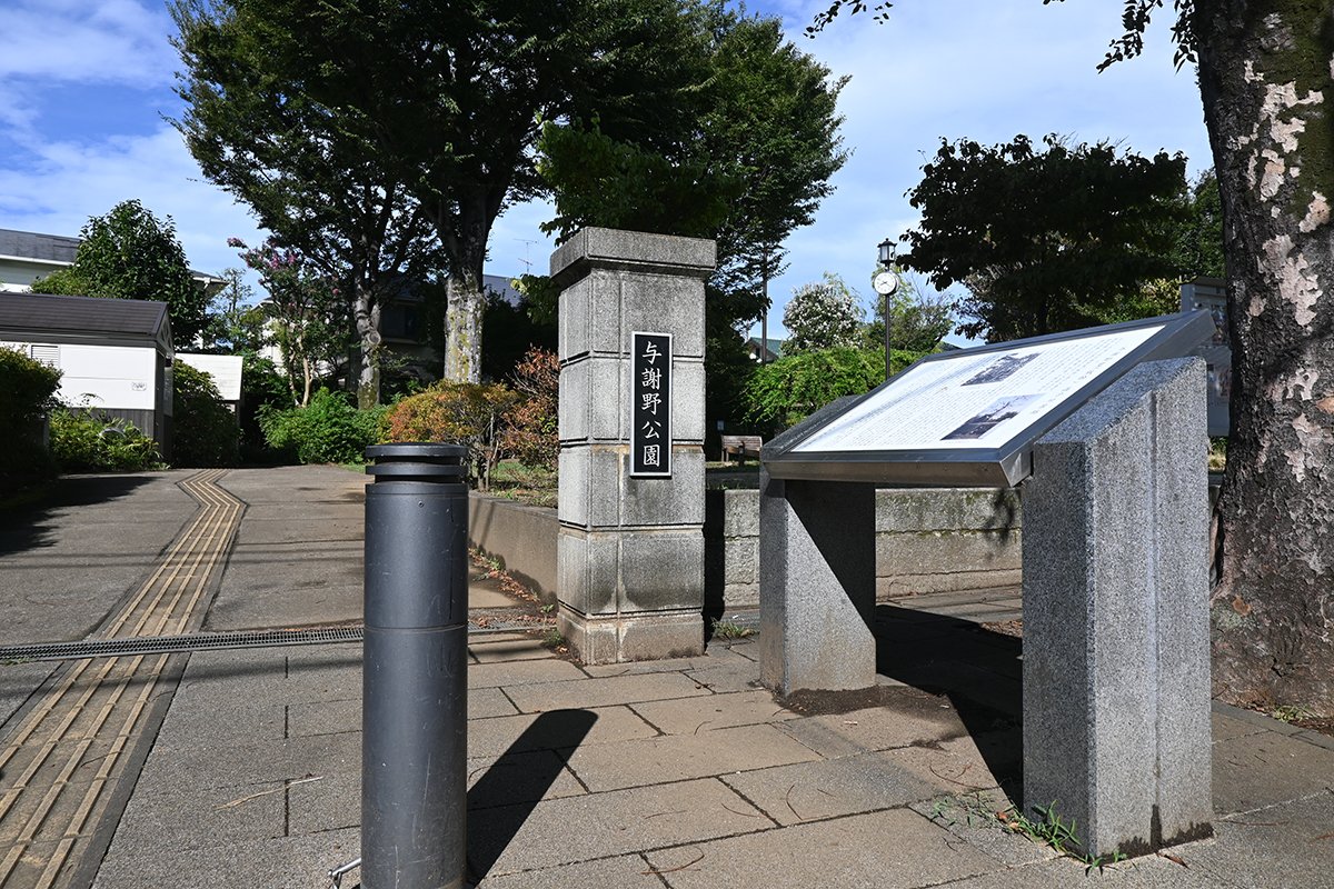 荻窪駅南口から徒歩約12分、杉並区立与謝野公園は歌人与謝野晶子・寛(鉄幹)夫妻が晩年を過ごした住居跡地にある。晶子が63歳で生涯を終えた後、1982(昭和57)年から30年間は「南荻窪中央公園」として親しまれてきた。2006(平成18)年ごろ「公園に“与謝野”の名を冠して町おこしを」との声が地元からあがり、これを受けて杉並区が公園の拡張と再整備に着手。晶子没後70年の節目となる2012(平成24)年4月28日、名称を改め「与謝野公園」として開園した。