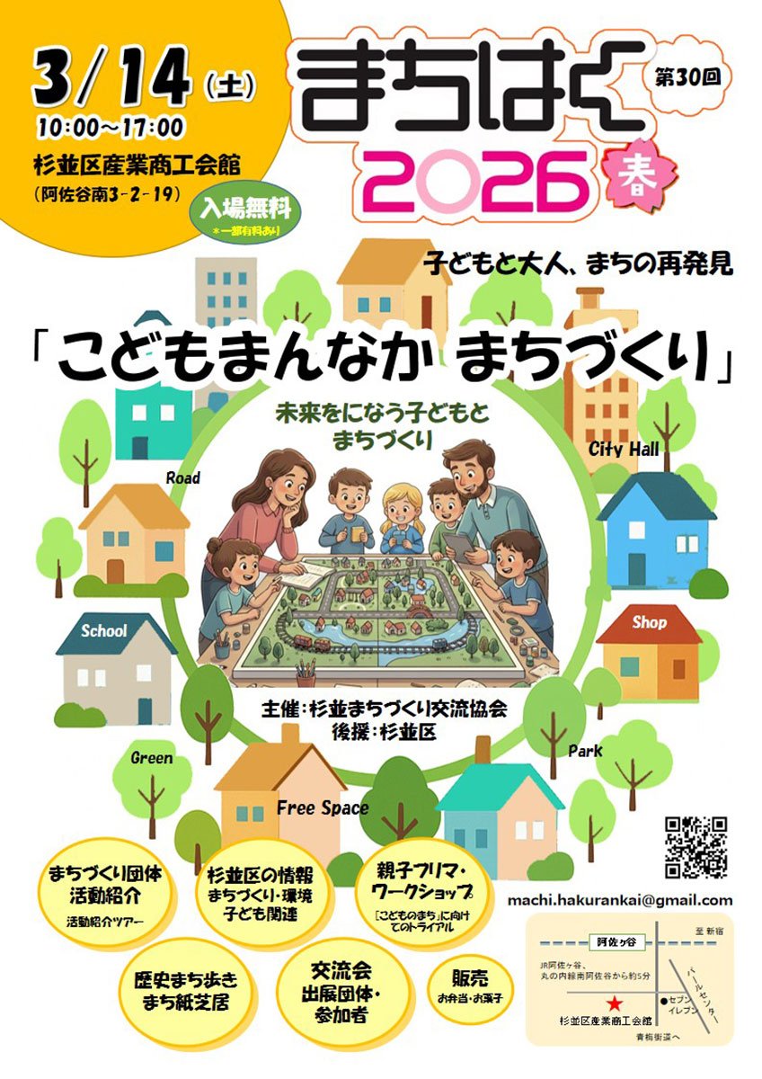 まちはくは、区民主体の「まちづくり」を目指し、地域活動団体が情報を発信、杉並をあらためて理解し発見するイベントだ。毎年3月初旬の日曜日に、任意団体の「杉並まちづくり交流協会」の主催で行われている。