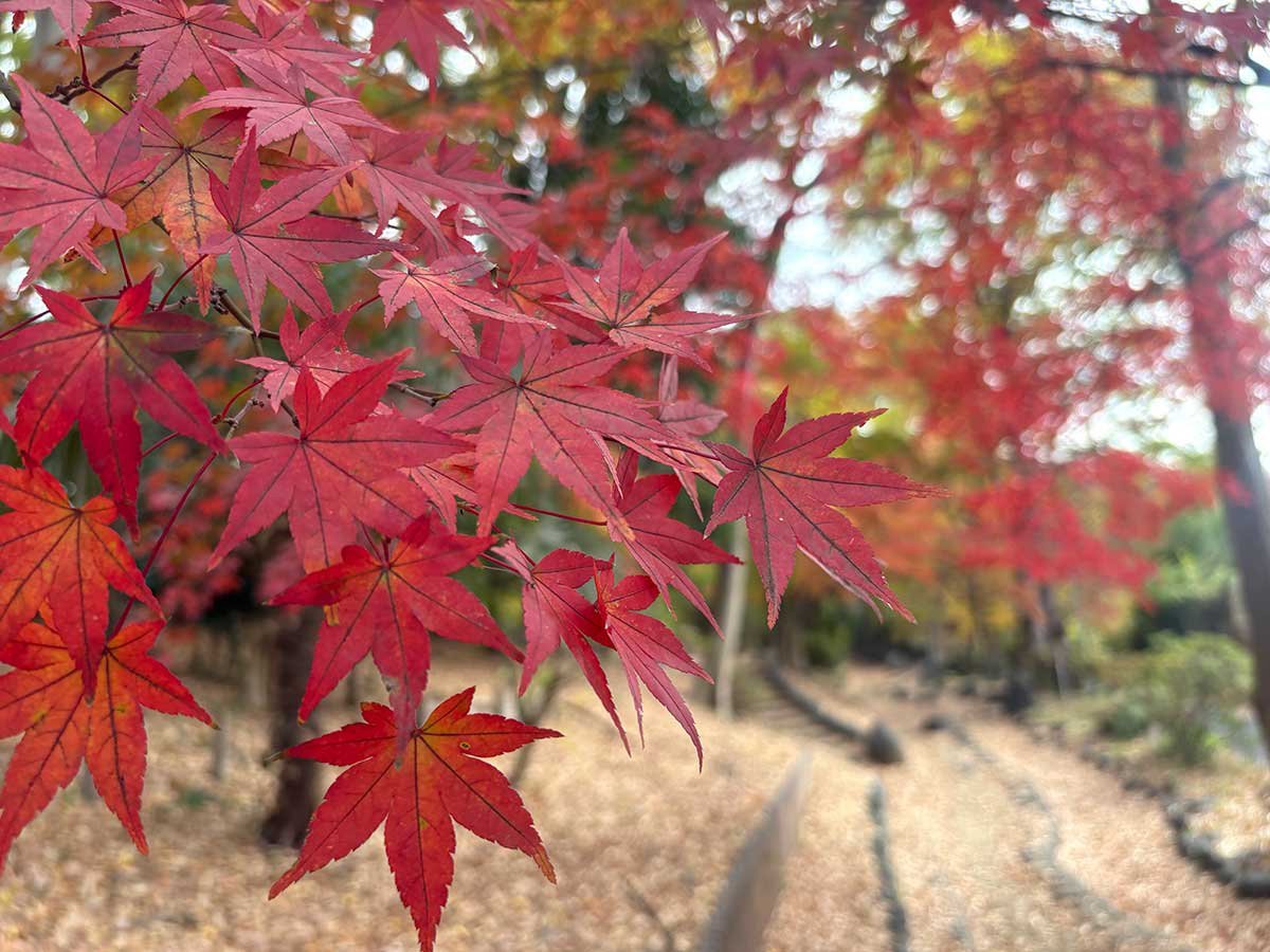 公園の西側には「林間園地」が広がり、木立の間を縫うように遊歩道が続いている。入り口は3カ所(北側、西側、南側)あり、どこから進んでも復原住居や竪穴住居跡のある大きな広場にたどり着くようになっている。ゆったりと散策を楽しめるのは、北側の入り口から南側に抜けるルートだ。木々のトンネルを歩くような遊歩道は、秋は落ち葉が舞い、夏は木漏れ日が爽やか。野鳥の鳴き声も聞こえてくる。