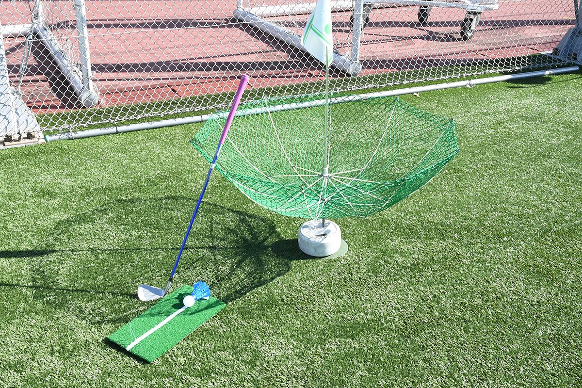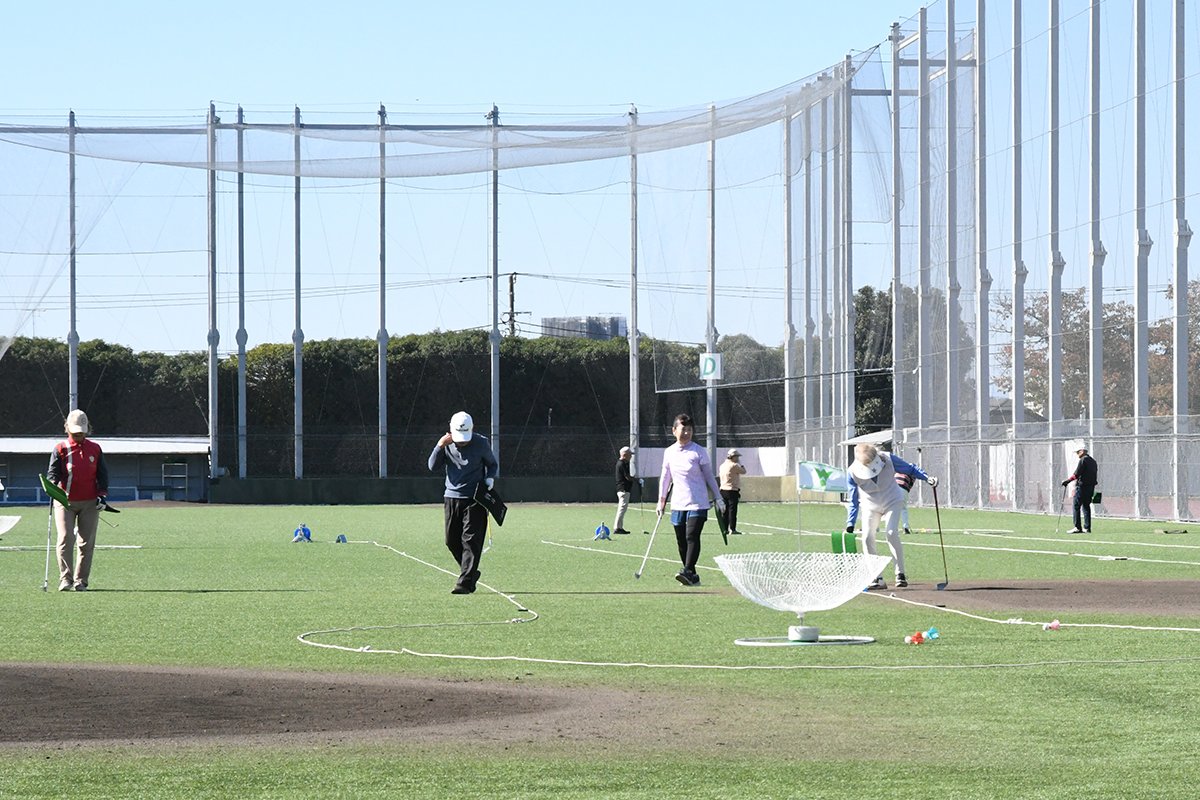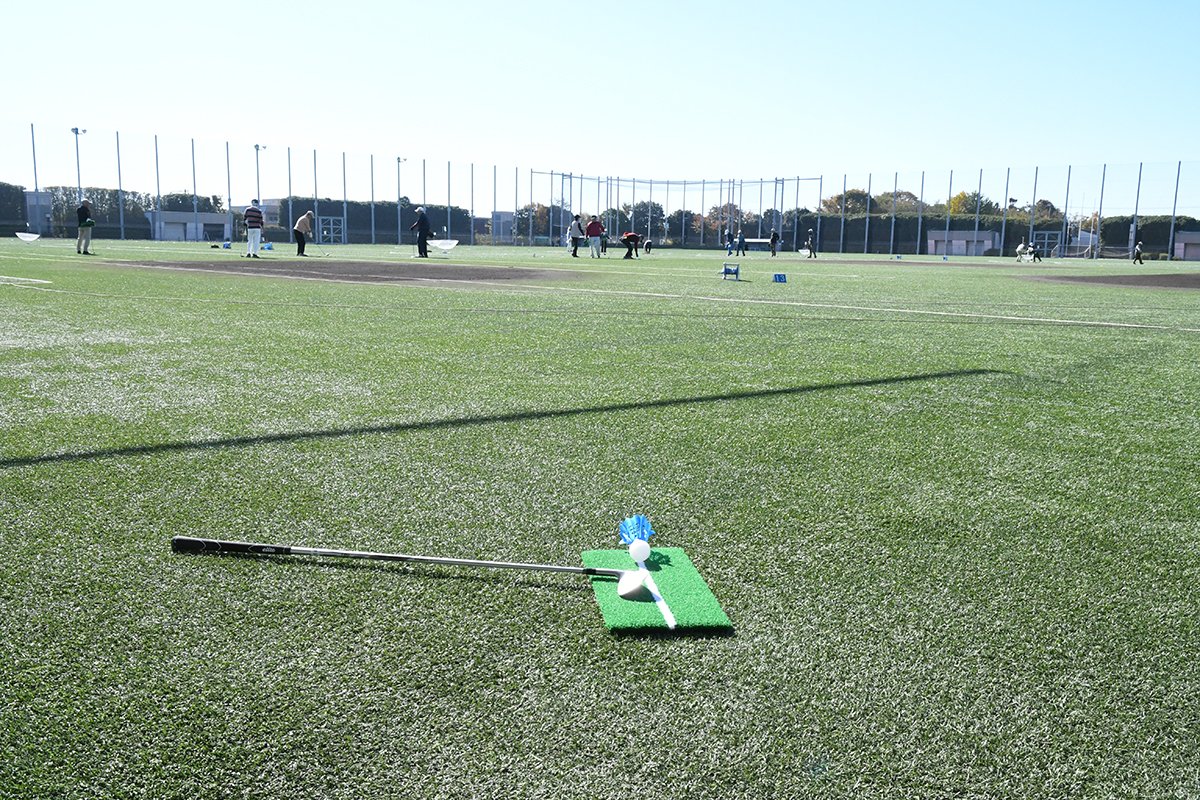 スポーツ施設のグラウンドなどで、羽根付きのゴルフボールを使用し、ゴルフクラブを1本だけ使い爽快にナイスショット。初心者でも高齢者でも健康的に楽しめるスポーツだ。
