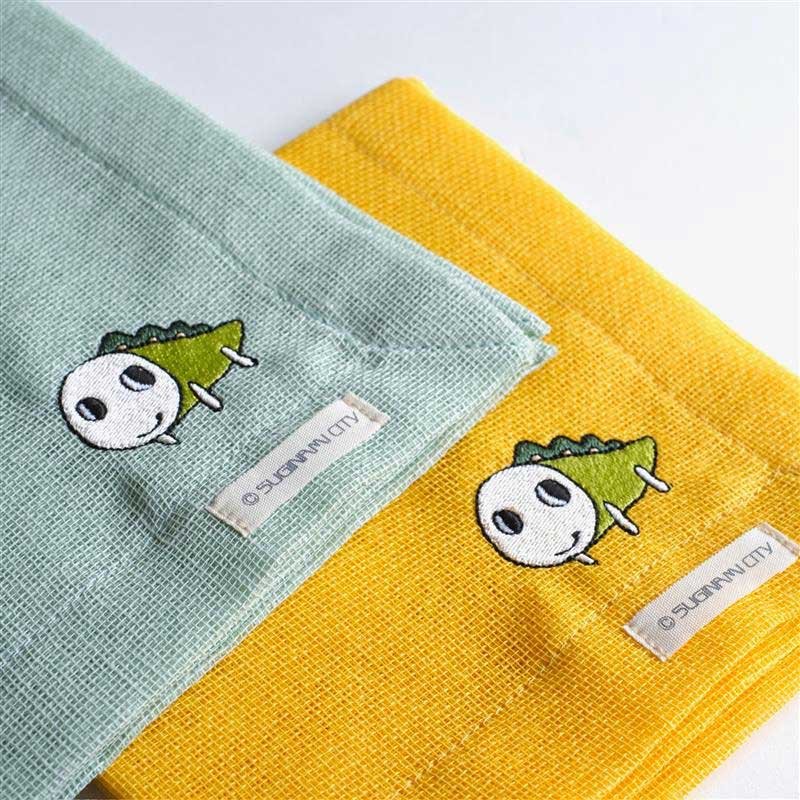 四歩の荻窪在住スタッフや企画スタッフの間でも、なみすけは人気キャラクターとのこと。「弊社はオリジナル商品製作の実績が少ないのですが、なみすけの知名度が荻窪のお客様に高いことを実感し、新しい試みとして製品化に至りました」と説明する。なみすけの刺しゅうはワンポイントでシンプルに、老若男女問わず使えるデザインになっている。サイズは30cm×30cm、カラーは青磁と山吹の2色があり、価格は各1,210円。
