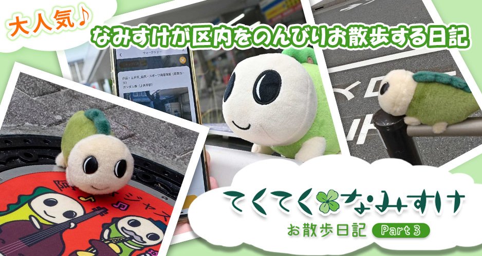 広報すぎなみ4月15日号に、大人気♪なみすけが区内をのんびりお散歩する日記のコラムが掲載されました。