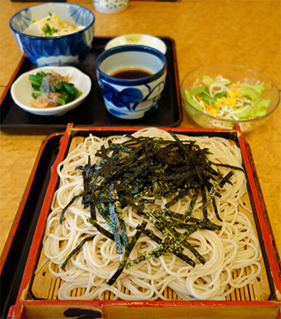 そば屋なのに「野菜ラーメン」が名物。醤油ベースの鳥ガラスープが、たっぷりの野菜炒めと二代目の手作り麺を引き立てる。「健康一番そば」はざるそばに豆腐と野菜の小鉢がついたバランスの良いヘルシーメニュー。単品メニューも豊富で、冬は湯豆腐、夏は鱧など、ほぼ月1回の割で変わる。店内メニューを宝探しのように隅から隅まで見るのも楽しい。オリジナルセットも可能で、カレーそば+もずく酢のような組み合わせも気軽に頼める。・ランチ:平均900円、ディナー:平均1,500円
