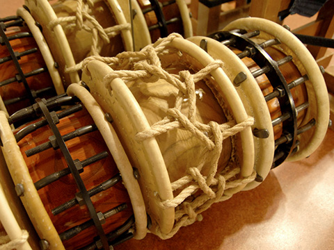 さらに河野さんがタダモノでないのは、自分で打つ太鼓を自分で作る点だ。「やってみないと気が済まないから」と笑うが、太鼓は木をくりぬき、牛の皮をなめし、張り、縄で絞め…と、たくさんの工程を経て完成する。「それぞれの工程に職人さんがいて、女人禁制のような世界。やらせてくださいと頼んでも断られるばかりで。半年が過ぎた頃にやっと、そこまで言うならと、工程の一部をする許しが出ました。」
