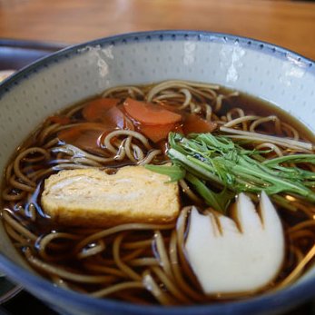 昭和13年同地で創業。二代目が仕切る店内は、どこか懐かしい町のそば屋の風情。ある日の「今週のヘルシーなおすすめ御膳」は、イカ天そば+昆布ご飯+野菜サラダ+お漬物+デザートと盛りだくさん。栄養バランスの良さからか男女ともに人気がある。「ひき肉とたっぷり野菜のあんかけそば」「小海老天とじそば」、東京女子大近くという立地にちなんだ「女子大そば(おかめそばの豪華版)」など、食べてみたいそばがずらりランチ:平均1,000円、ディナー:平均1,800円