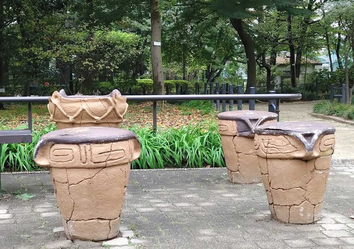 管理棟の1階には遺跡展示室があり、出土された土器や資料がわかりやすい解説とともに陳列されている。また、広場には縄文土器をかたどった椅子やごみ箱もあり、縄文時代が身近に感じられる楽しい工夫がされている。