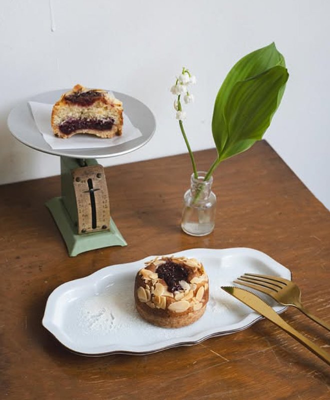 メニューのアイデアは、イメージが先に浮かび、それをメニューに反映できる材料から考え始めるそうだ。例えば定番商品「有機ラズベリーとアーモンドのタルト」は、春のチューリップが揺れているようなイメージを形にしたもの。そこには、逆光で照らされたチューリップの隙間から差し込む太陽光や、光の温かい感覚、小さい頃の体験や気持ちなど、いろいろな要素が含まれている。「日常の、当たり前と思える瞬間を大事にして味にしたい」というのがゆんさんの思いだ。