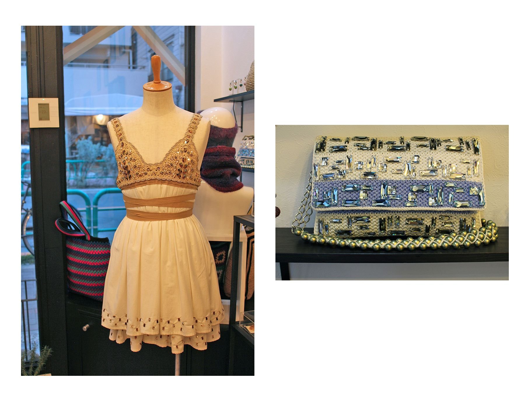 独立する前には、有名企業とコラボレーションをする機会にも恵まれた。2014(平成26)年には、スワロフスキーとのコラボレーションで、バッグとドレスを制作。その時の作品は、今もAtelier 12 Bisに飾ってある。