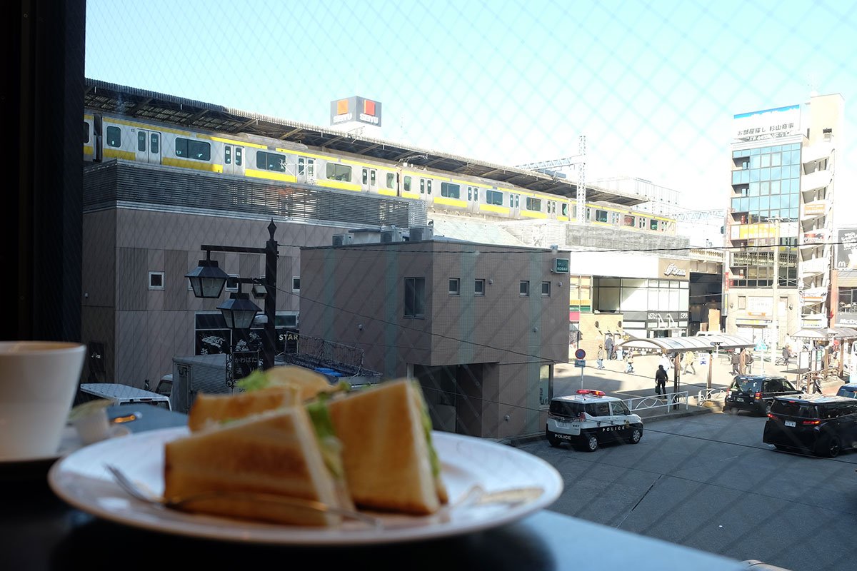 食事を楽しみながら、ふと視線を上げれば、窓一面に阿佐谷駅前のパノラマが広がっている。南口のロータリーには30mを超えるメタセコイア(アケボノスギ)が雄大にそびえ立ち、12月からはイルミネーションがそれらを彩る。そしてひっきりなしにホームへと吸い込まれていく黄色やオレンジの電車。「この視点の高さが、日常の悩みや煩わしさを少しだけ小さく見せてくれます」とオーナーの藤巻さんは自慢気に話す。また阿佐谷を舞台にした漫画『ひらやすみ』でも舞台のひとつとして取り上げられ、聖地巡礼の目的での来客もある。ホール担当の田波(たんば)さんは「誰にとっても居心地のいい空間であってほしいのでマナーの悪いお客さんにはそれとなく注意もさせてもらっています」とほほ笑んだ。